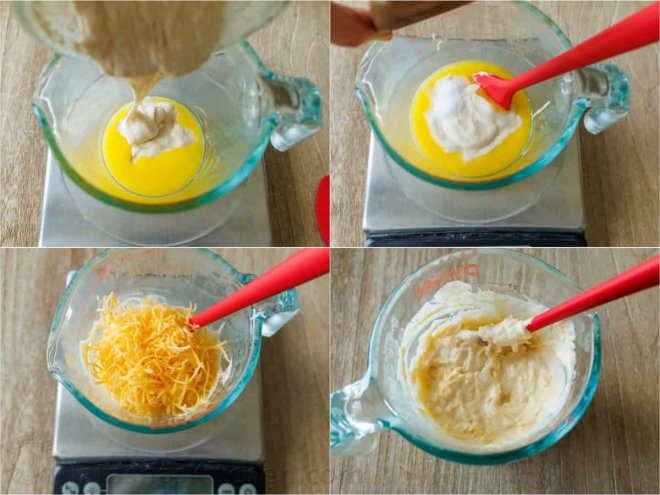 Preheat – Preheat your oven to 350°F. Line a baking sheet with parchment paper.Melt and Combine – Melt the butter in a large measuring cup or mixing bowl and cool until just lukewarm. Add the sourdough starter discard, and salt and stir until well combined. Add cheese and stir until well incorporated.