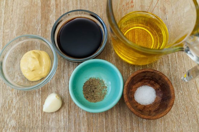 Ingredients for Balsamic VinaigretteWe used the same dressing for our Beet Salad, Chicken Cobb Salad, and the mixed greens salad in my Cookbook. It’s a keeper of a salad dressing and so versatile.