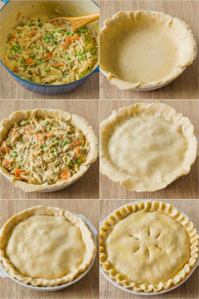 Vegetables – green beans, celery, corn, broccoli, chopped potatoes (fork tender)Herbs – Thyme, oregano, chivesMeat – Leftover roast turkey or baked ham are great options, especially after the holidays.Crust – While we love using our homemade pie crust for both the top and bottom layers, you can easily swap the top layer with store-bought puff pastry for a quick and delicious alternative. The Best Crust for Chicken Pot PieIn a pinch, you can use a store-bought double pie crust for this recipe, but we highly recommend a homemade all-butter Pie Crust for the best results. Made with just five ingredients (including water and salt) it takes just minutes to make. You can also make it a couple of days ahead.