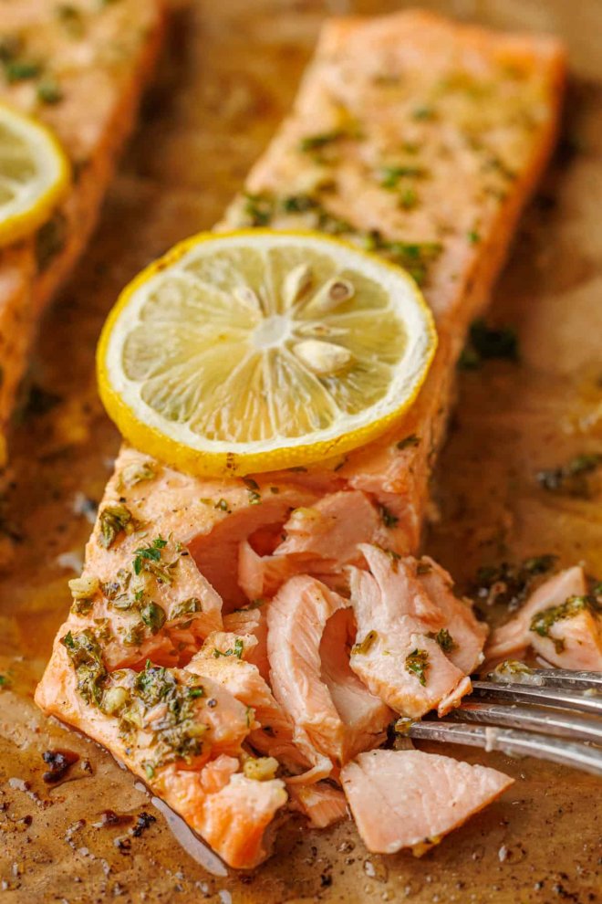 The Best Baked Salmon RecipeWhen it comes to parties and entertaining, this 20-minute roasted salmon is one of our go-to seafood recipes along with the best Fish Tacos and Creamy Shrimp Pasta.