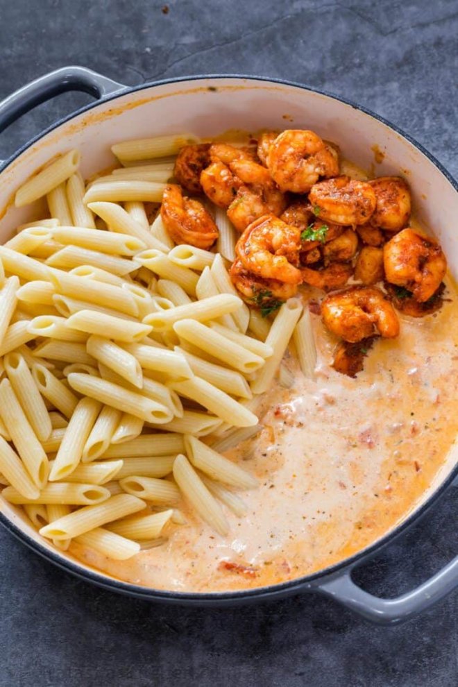 Cajun Shrimp Pasta RecipeThis simple pasta dish is such a great recipe to make, not only for busy weeknights but even a fancy dinner. Cajun Shrimp Pasta is a flavor-packed spin on our Creamy Shrimp Pasta. You’ll love the buttery and tender shrimp tossed in a spicy cajun seasoning and coated in creamy tomato alfredo pasta sauce with penne noodles.