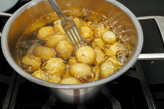 Pro Tip:Don’t overcook your potatoes—cook them just until they are fork-tender. If they become too soft, they’ll turn mushy, be difficult to slice, and won’t hold their shape when you fold in the other ingredients.