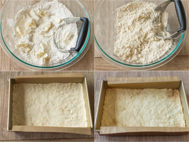 How to Make a Shortbread CrustYou can use either a food processor or a bowl and pastry cutter to make the crust. You want the butter to cut into the flour until it looks like a coarse meal with some pea-sized crumbs forming.